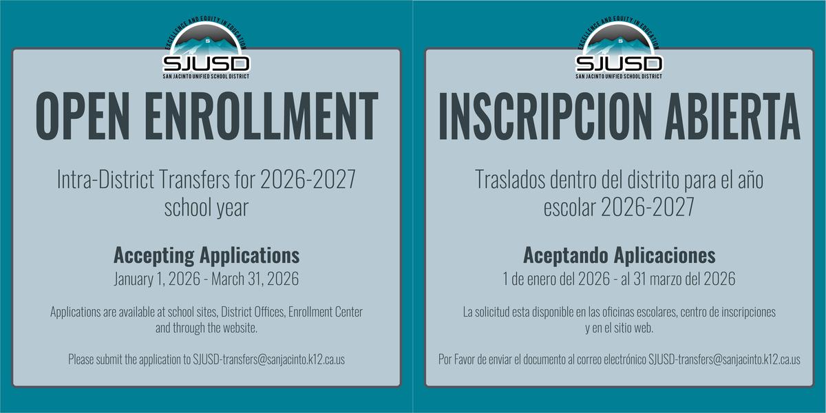 Applications are available at school sites, District Offices, Enrollment Center and through the website.
