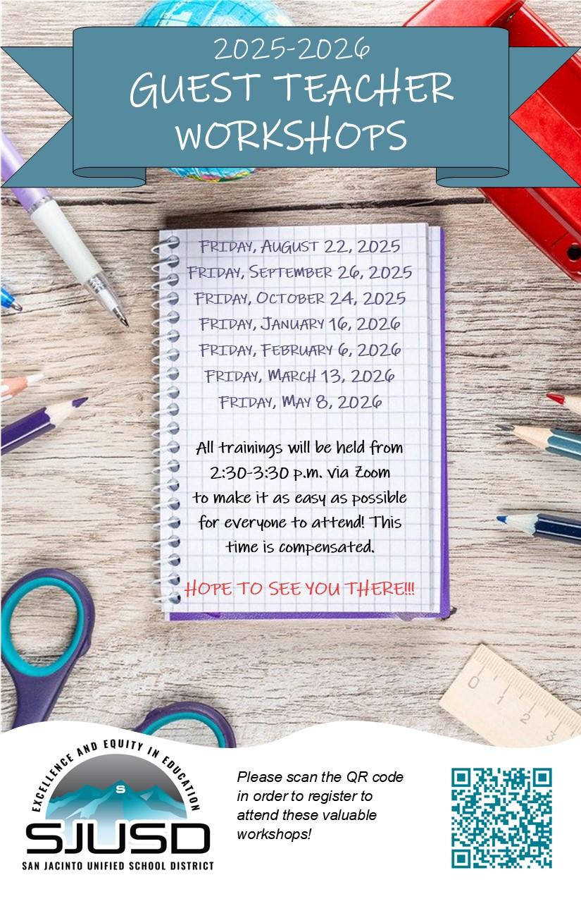 Please consider attending these hour-long sessions to refine your skills as a guest teacher.